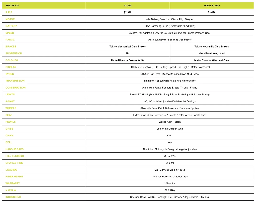 Conquer Australia’s Hardest terrain such as Sand, Hills, Dirt, GrassΒ with ease on theΒ ACE ElectricΒ Bike. Now loaded with aΒ 7 Speed ShimanoΒ transmission βοΈ and a seriously lightweight Aluminium construction, this is a bike that will not only combat rust butΒ you can actually ride it with ease in the unlikely event that youΒ ran out of charge!