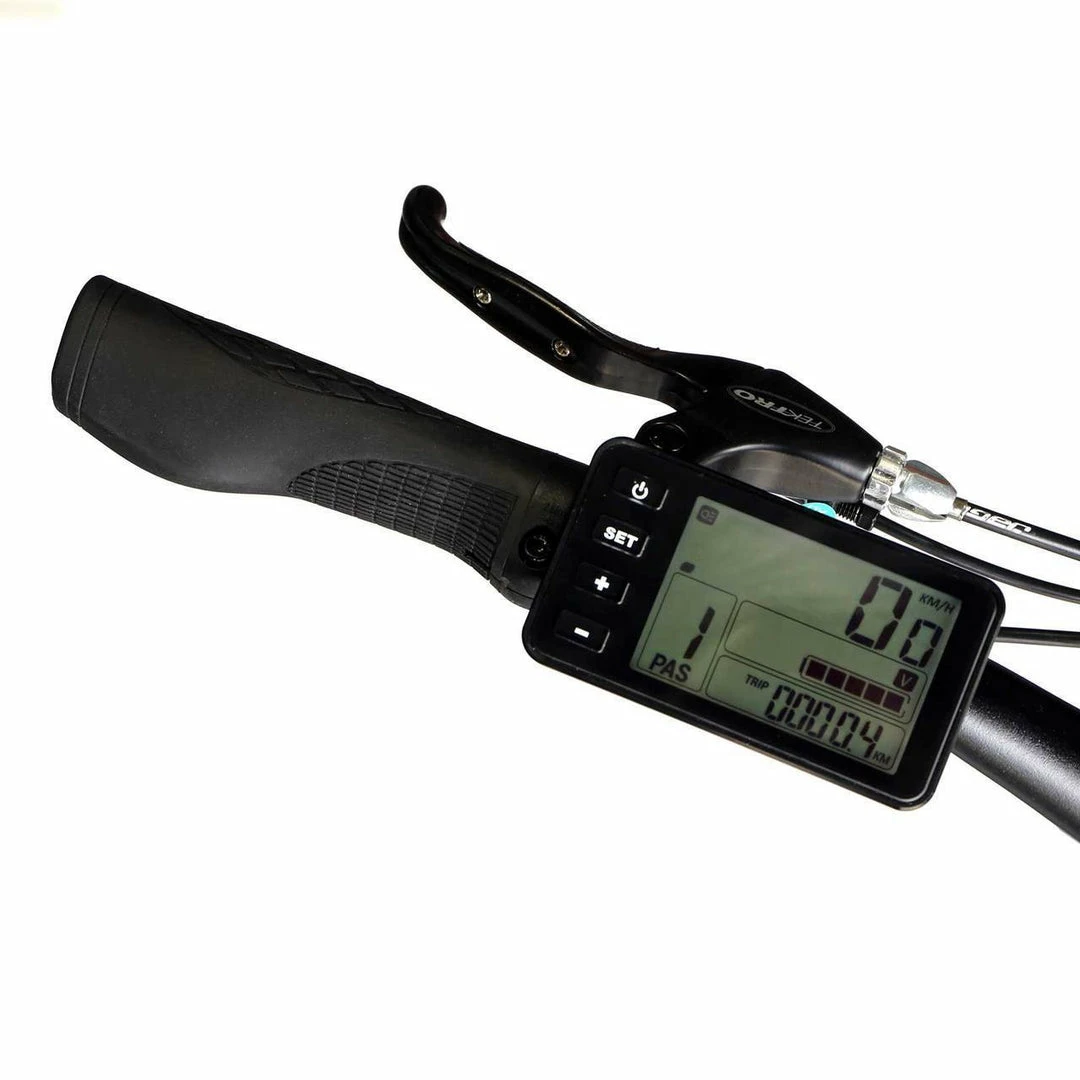 Display: Back lit LCD with USB Charging port, 7 levels of assist (0 no assist and 6 PAS levels), power meter, battery charge indicator, trip functions