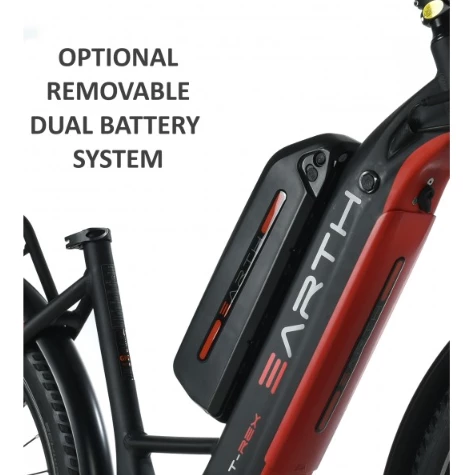 EARTH T-rex electric bike comes with a fully integrated down tube battery to protect battery and wires from damage and theft.