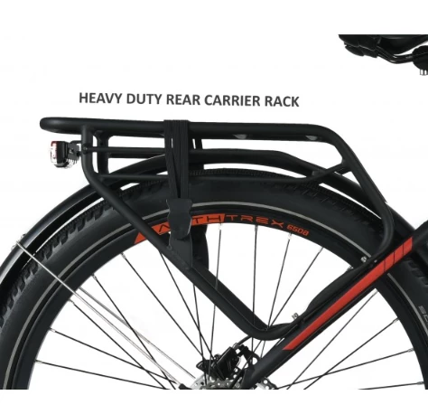 heavy duty rear rack, front & rear mudguards, front led lights and rear light, adjustable stem, and massive 48V 600WH Samsung