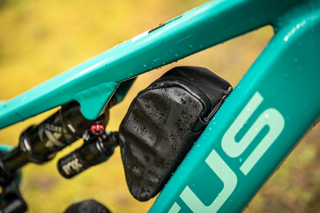 Between the top and down tube we have placed a handy tool bag. It’s just big enough to carry a tube, a mini tool and a tiny pump. It’s well secured with two Allen screws and perfectly integrated into the design of the bike.