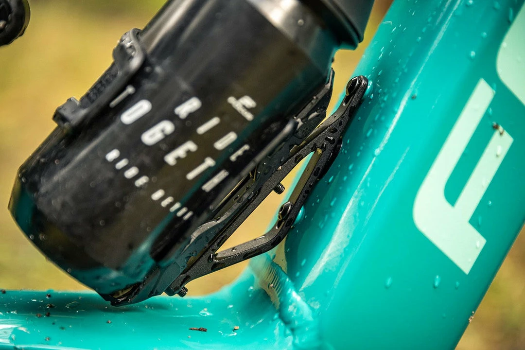 From size medium upwards, all bikes can carry a big 750 ml water bottle without any issue. For everyone who will run a more downhill oriented setup with his bike and chooses a piggyback rear shock, we developed a bottle cage adapter to keep carrying your water bottle on rides. It slightly changes the position of the bottle and prevents any interference with the piggyback.