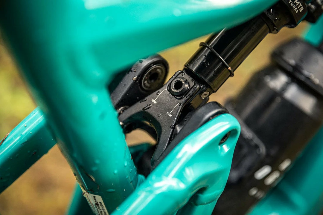 The main pivot is really close to the axle, low anti squat causes little pedal kick-back. Anti squat value is close to 100 when you ride in sag. It means the bike not only descends pretty well, but it also has a great climbing ability. Especially on technical terrain where consistent traction is key.