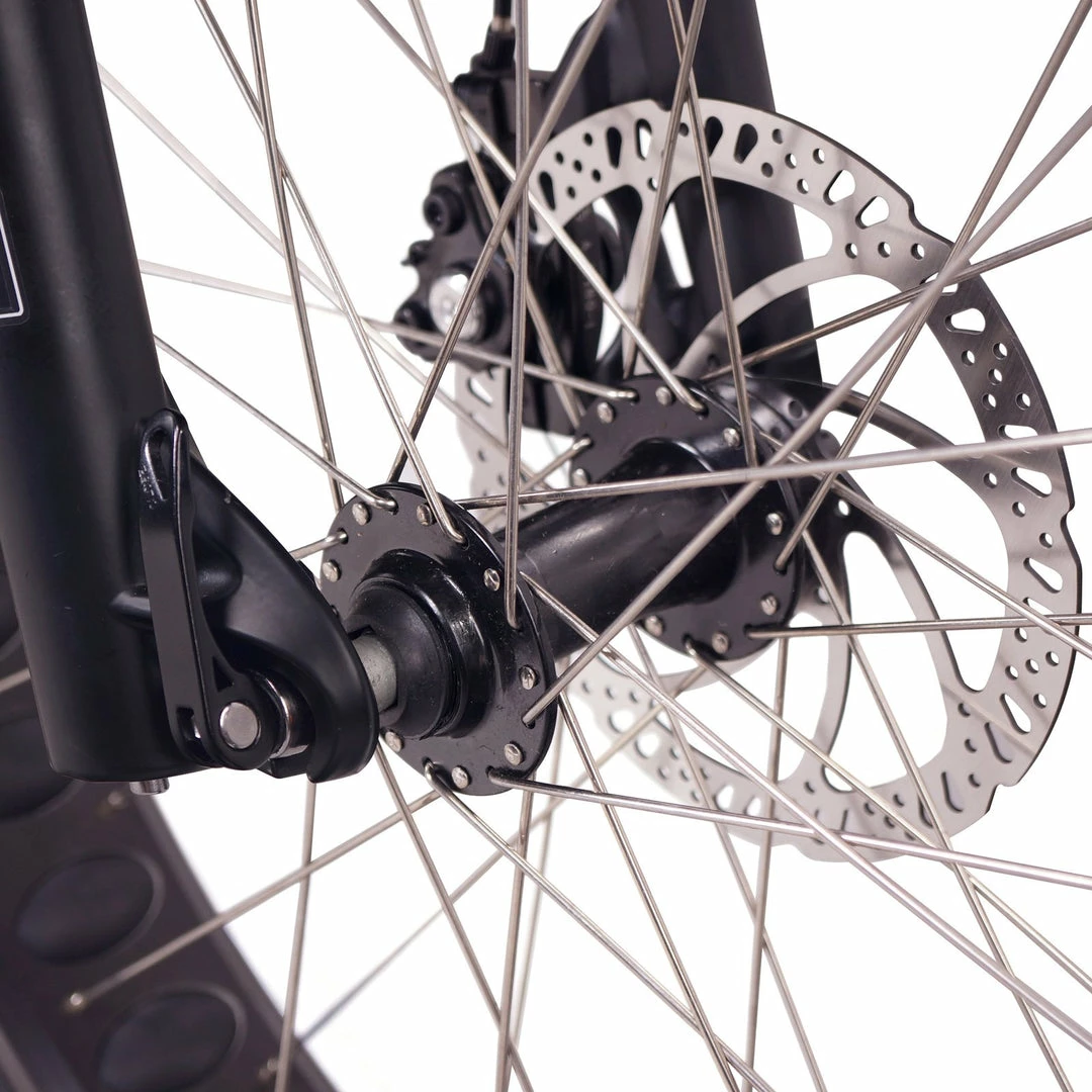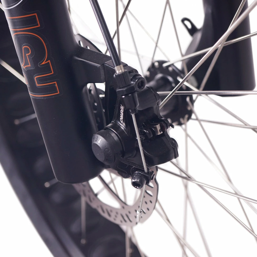 Tektro mechanical Disc and Tektro Levers with Motor Inhibitors keeps you always in control, 180mm disc rotor give more reassurance for high-speed operation.