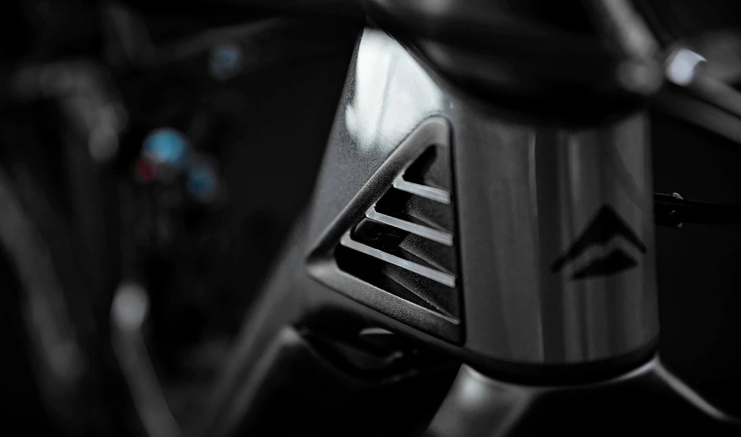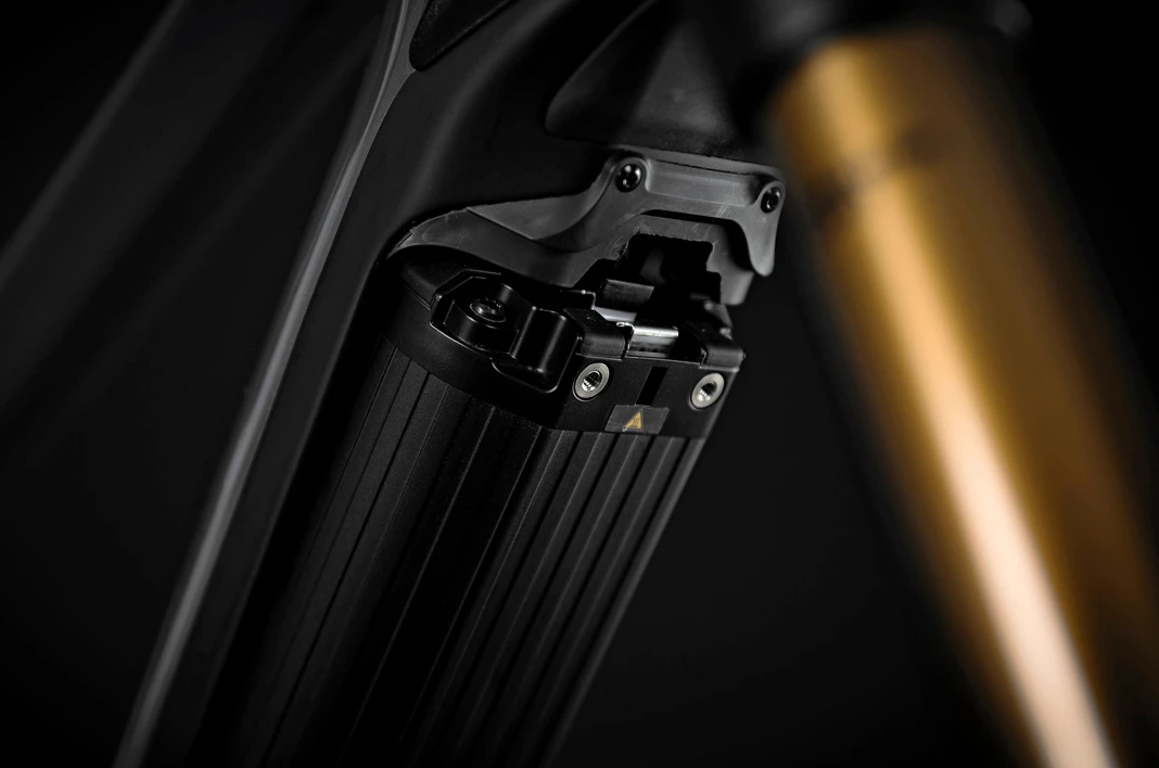 First introduced in 2015, the e-bike version of the ‘Internal Block’ is incorporated directly into the frame and prevents the fork crown from hitting the frame in case of a crash or an extreme steering angle. As an extra protection, there are additional rubber bumpers on the frame to avoid any frame damage from the fork crown.