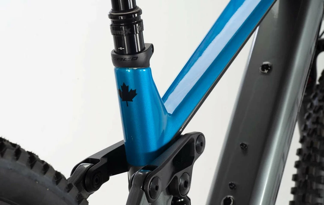 Two-piece bridgeless seatstays increase tire clearance and facilitate a steeper seat tube design, permitting longer-travel, size-specific dropper posts. The 34.9mm post, combined with the lower top tube make it easier for riders to move around and to get seats right out of the way on steep descents without sacrificing stiffness or strength when fully extended.
