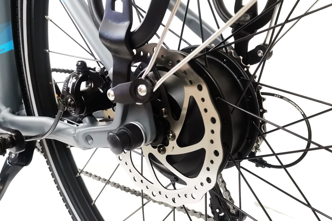 The bike is powered by a 250w brushless motor that drives the rear wheels. This powers the bike to a limited top speed of 25 km/h on public roads and up to 35 km/h off-road. The motor is more than powerful enough to support the maximum 120 kg load capacity of the bike. And should make short work of riding home with the groceries.